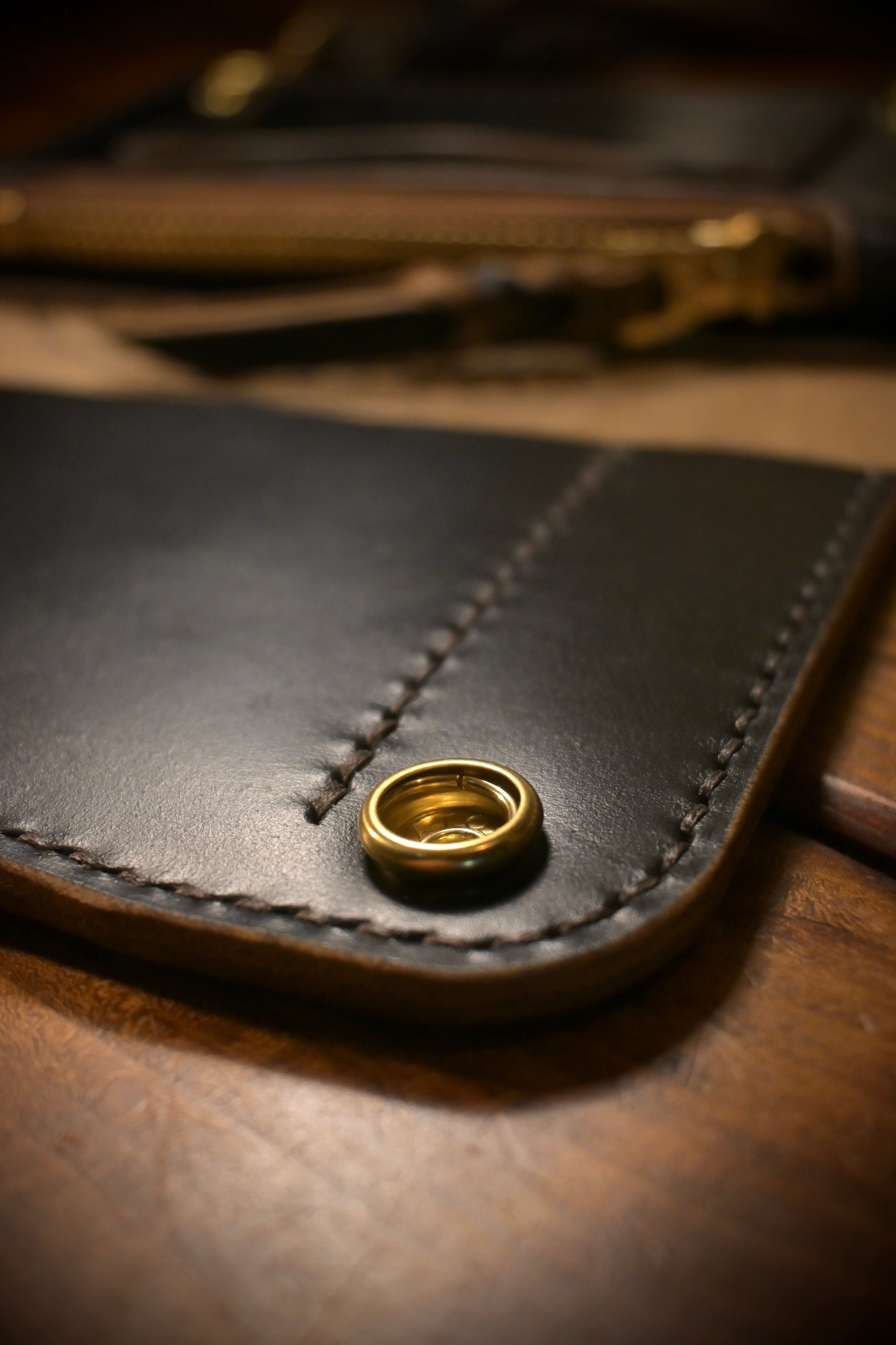 茶芯のブラックレザーを採用しており使い込むほどに下地のブラウンが現れ唯一無二の経年変化を楽しめます。