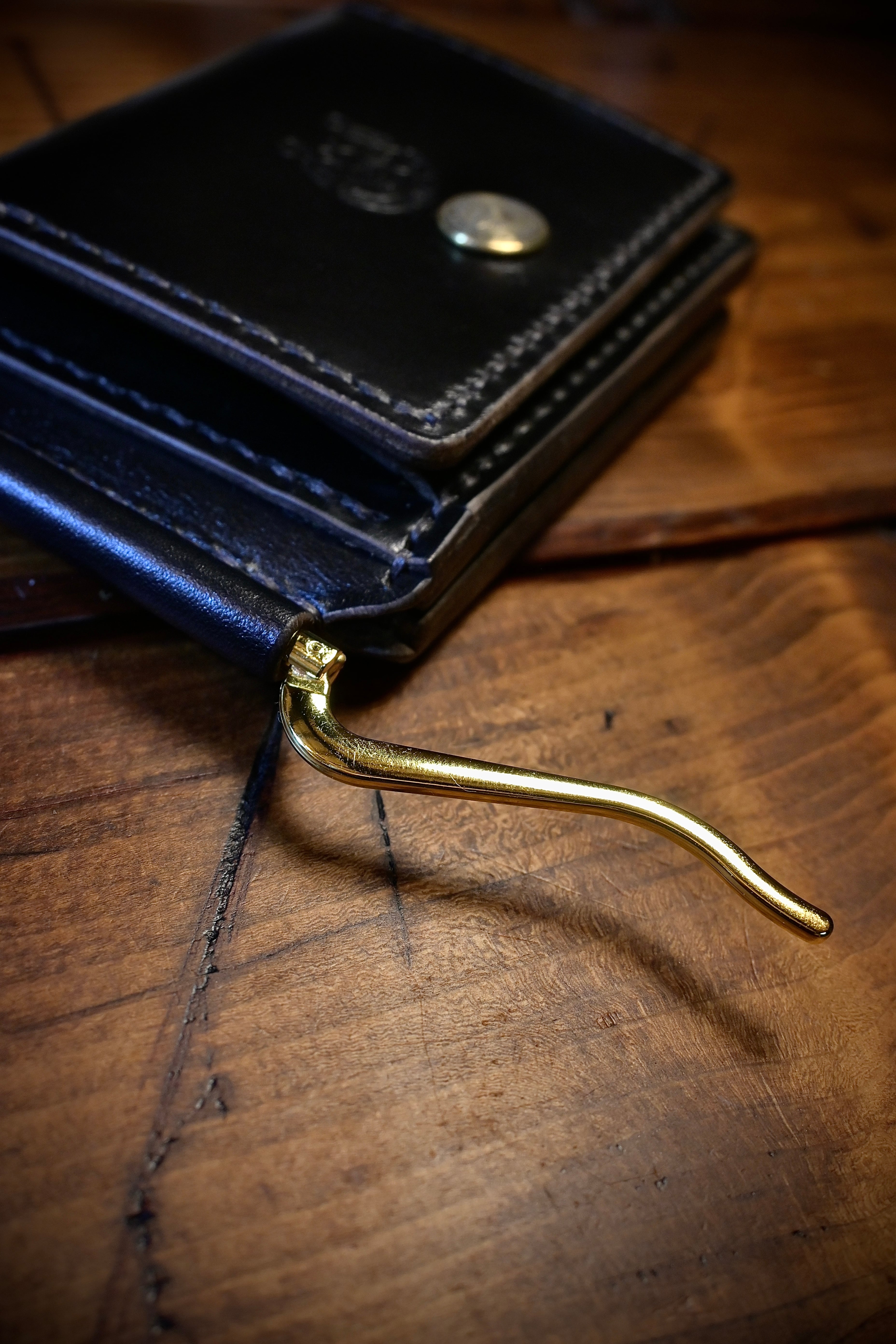 重厚なレザーとオリジナルジャンパーホックを採用した、存在感のあるマネークリップウォレット。