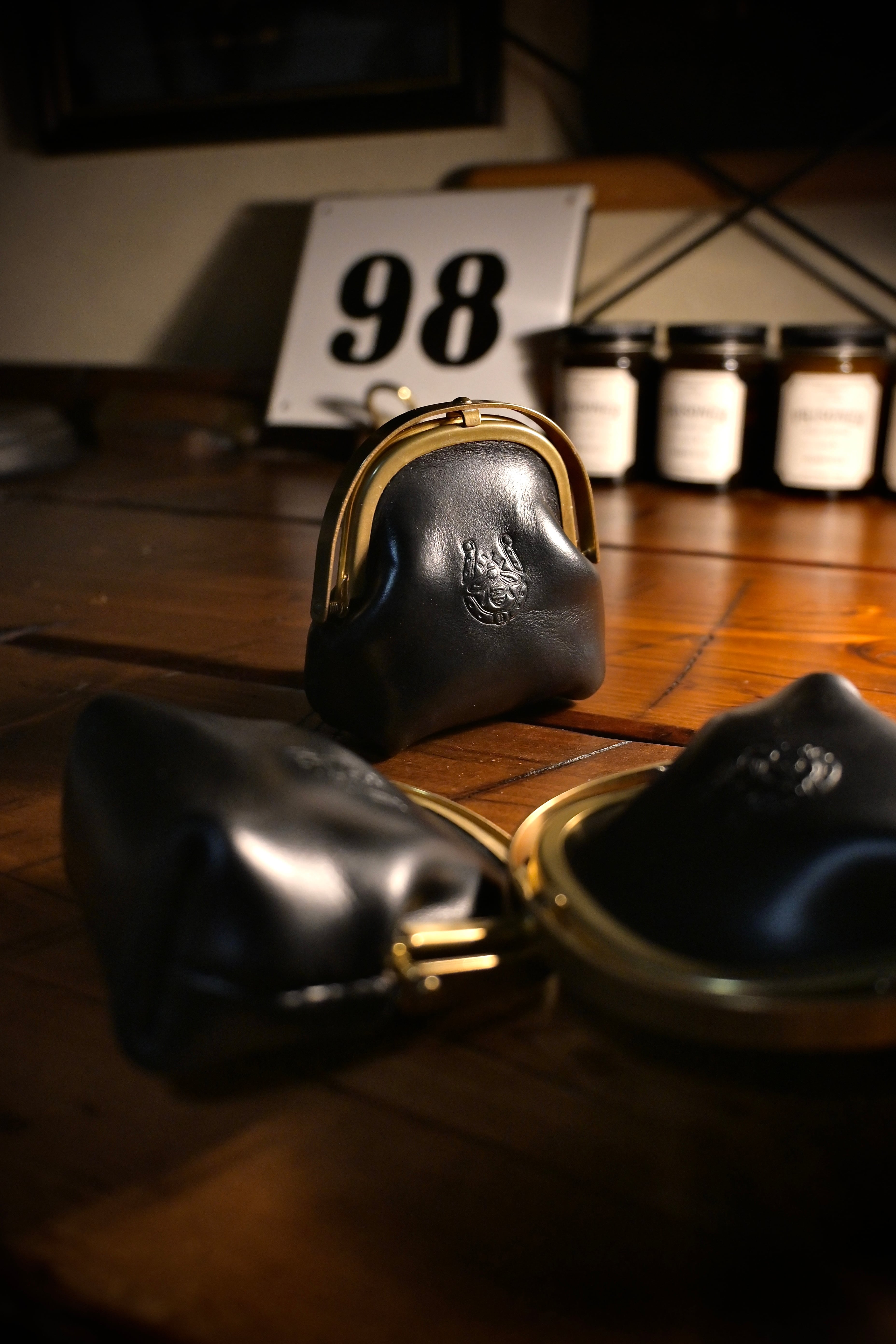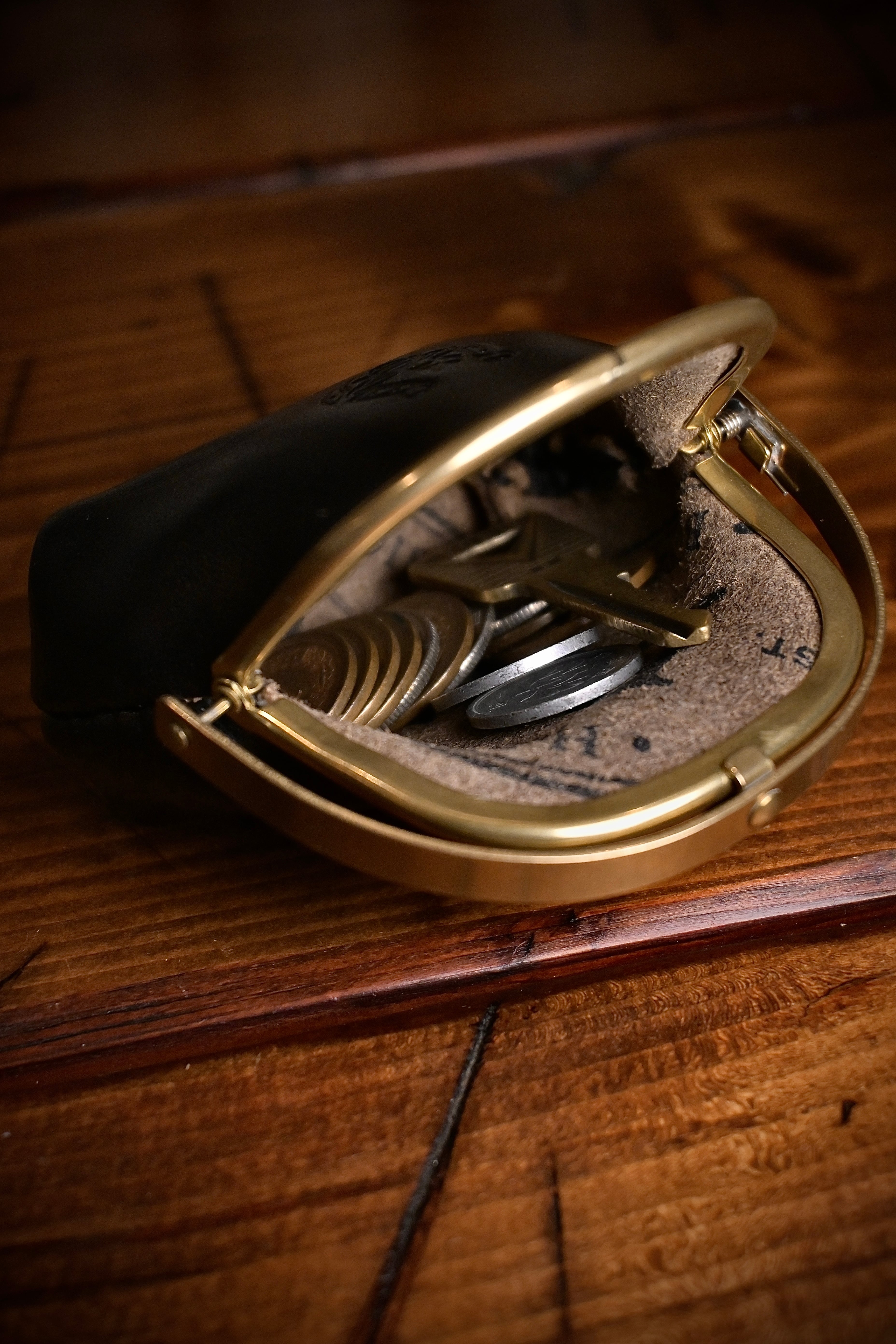 真鍮フレームとレザーが織りなす、落ち着いた光沢と重厚感。